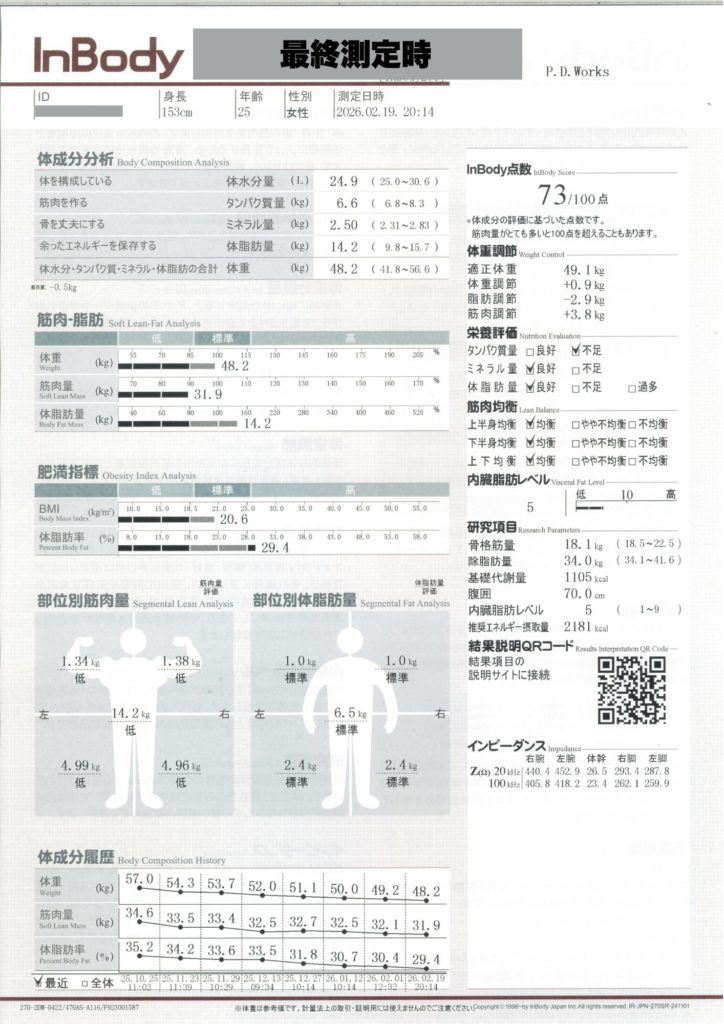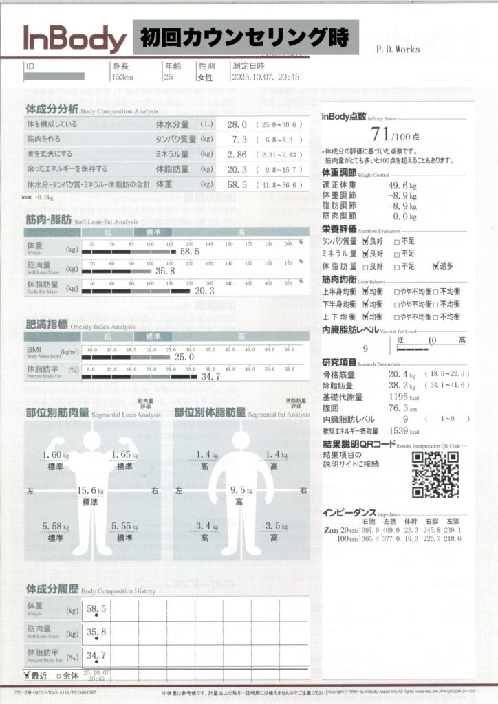 - 体脂肪率:34.7% → 29.4%(-5.3%)