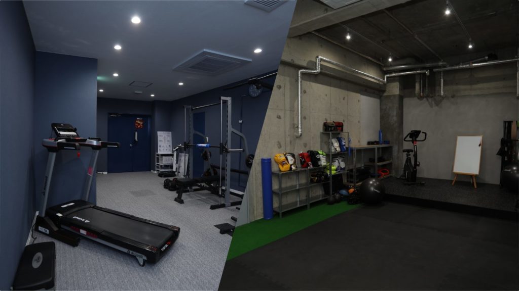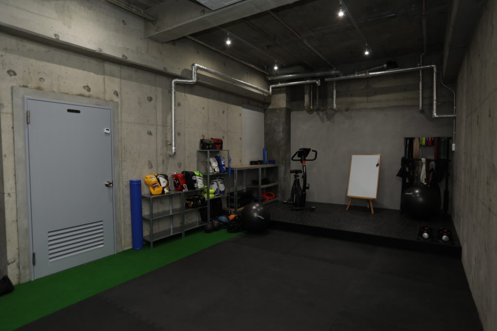 マットスペース&フリーウェイト完備で格闘技系トレーニング(ミット打ち、ブラジリアン柔術)の個人指導からダイエット、健康維持、バルクアップ目的のワークアウトまで幅広く対応。