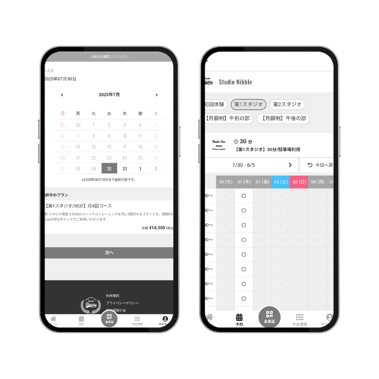 - 予約サイトにアカウントを新規登録し、予約ページからご希望の日時、スタジオ、担当者を選択してご予約ください。